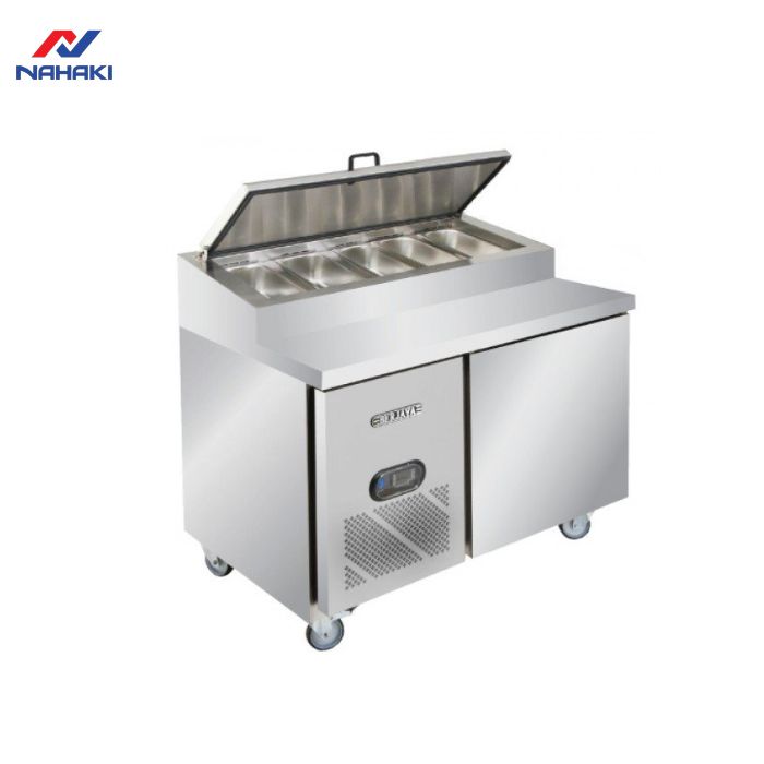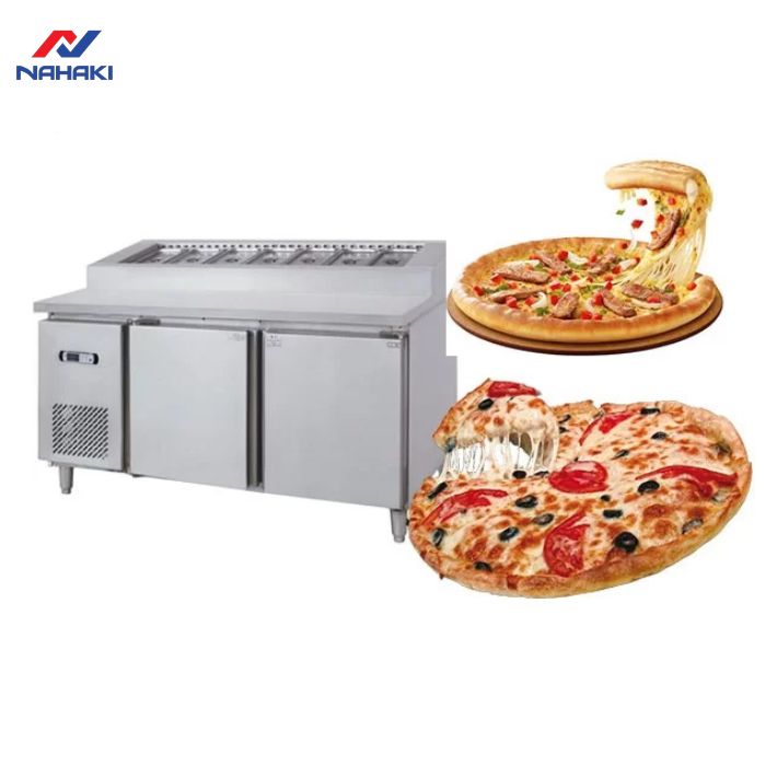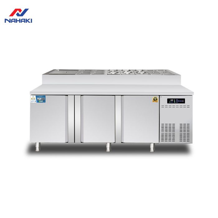 Bàn làm bánh pizza mặt đá là giải pháp hoàn hảo giúp các đầu bếp duy trì độ tươi ngon của bột bánh tại Nahaki. Thiết bị tích hợp hệ thống làm lạnh sâu cùng mặt đá cẩm thạch cao cấp giúp quy trình chế biến bánh pizza trở nên chuyên nghiệp và nhanh chóng hơn. Bàn mát làm bánh, thiết bị quầy pizza, bàn thực phẩm nguội.