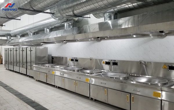 Bên cạnh việc phân khu, hệ thống thông gió cũng cần được chú trọng đặc biệt. Trong các khu bếp tập thể, lượng nhiệt tỏa ra từ các họng đốt là rất lớn, nếu không có **hệ thống hút khói** đủ mạnh, không khí sẽ trở nên ngột ngạt, gây ảnh hưởng xấu đến sức khỏe đầu bếp. Theo tính toán của các kỹ sư Nahaki, vận tốc gió tại miệng hút cần đạt từ 0.25 đến 0.5 m/s để đảm bảo hút sạch mùi và nhiệt lượng dư thừa mà không gây ồn ào quá mức cho khu vực ăn uống phía ngoài.