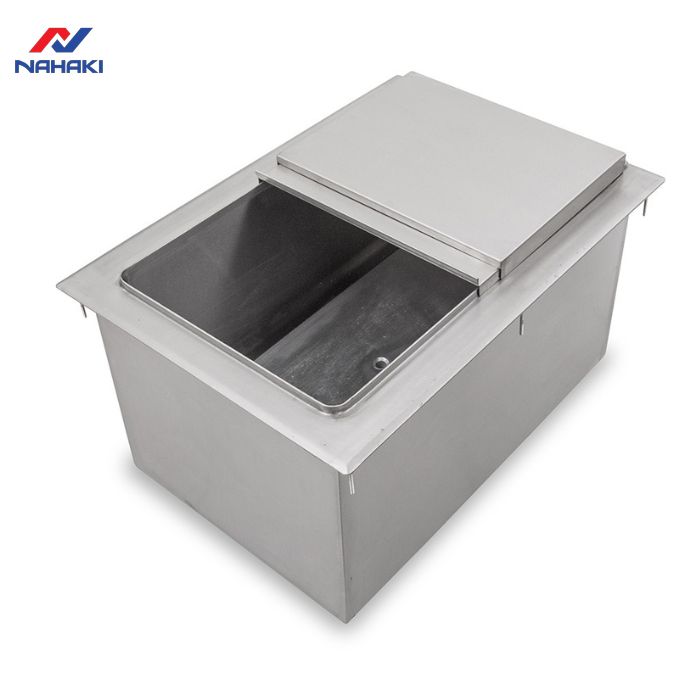 So với thùng nhựa hay thùng xốp nhanh bị ố vàng, bám mùi và dễ nứt vỡ, inox 304 duy trì vẻ đẹp sáng bóng vĩnh cửu. Thiết kế thùng đá nắp trượt của NAHAKI không chỉ tiết kiệm diện tích mở nắp mà còn tạo cảm giác chuyên nghiệp, hiện đại cho bất kỳ không gian bar nào. Đặc biệt, bề mặt inox phẳng mịn giúp việc vệ sinh, khử khuẩn diễn ra nhanh chóng, đảm bảo quán luôn đạt các tiêu chuẩn kiểm tra về vệ sinh an toàn thực phẩm.