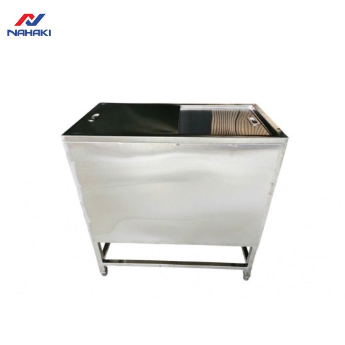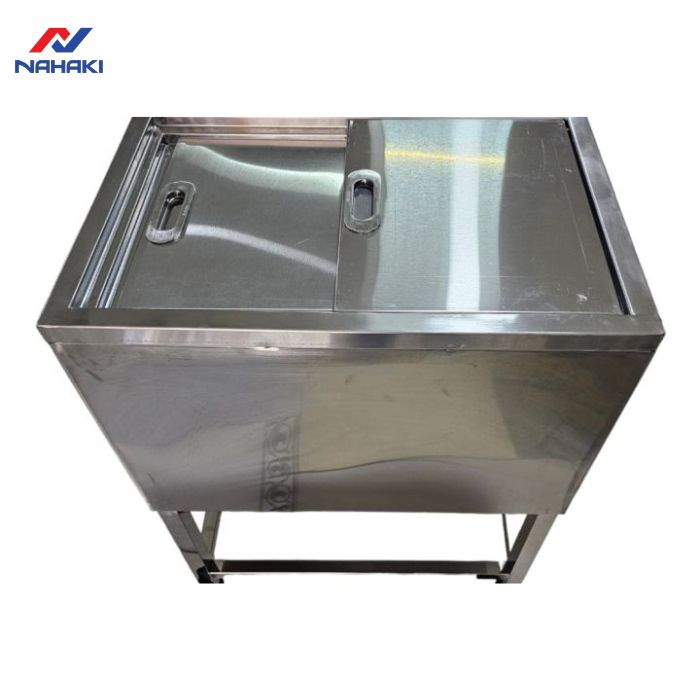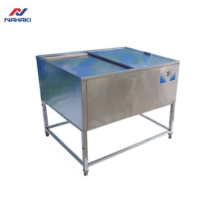 Để đảm bảo khả năng chịu lực khi chứa đầy đá (có thể lên tới hàng trăm kg), cấu trúc chân đứng của thùng đá cần được gia công vô cùng chắc chắn. Tại NAHAKI, chúng tôi sử dụng các thanh inox vuông 40x40mm có độ dày 1.2mm để làm khung chân, đảm bảo thiết bị không bị rung lắc hay võng bề mặt khi sử dụng lâu dài.