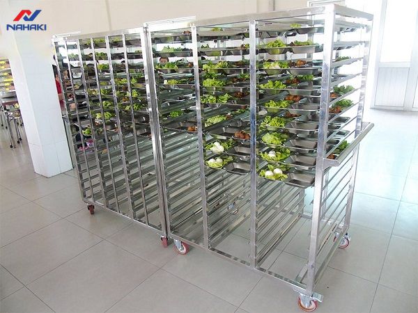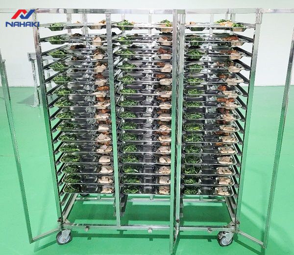 Lưu ý quan trọng: Khi sử dụng xe đẩy trong môi trường có độ ẩm cao, quý khách nên ưu tiên các dòng xe có thiết kế các tầng dạng nan thoáng để hơi nước không bị đọng lại, gây ám mùi cho suất ăn.